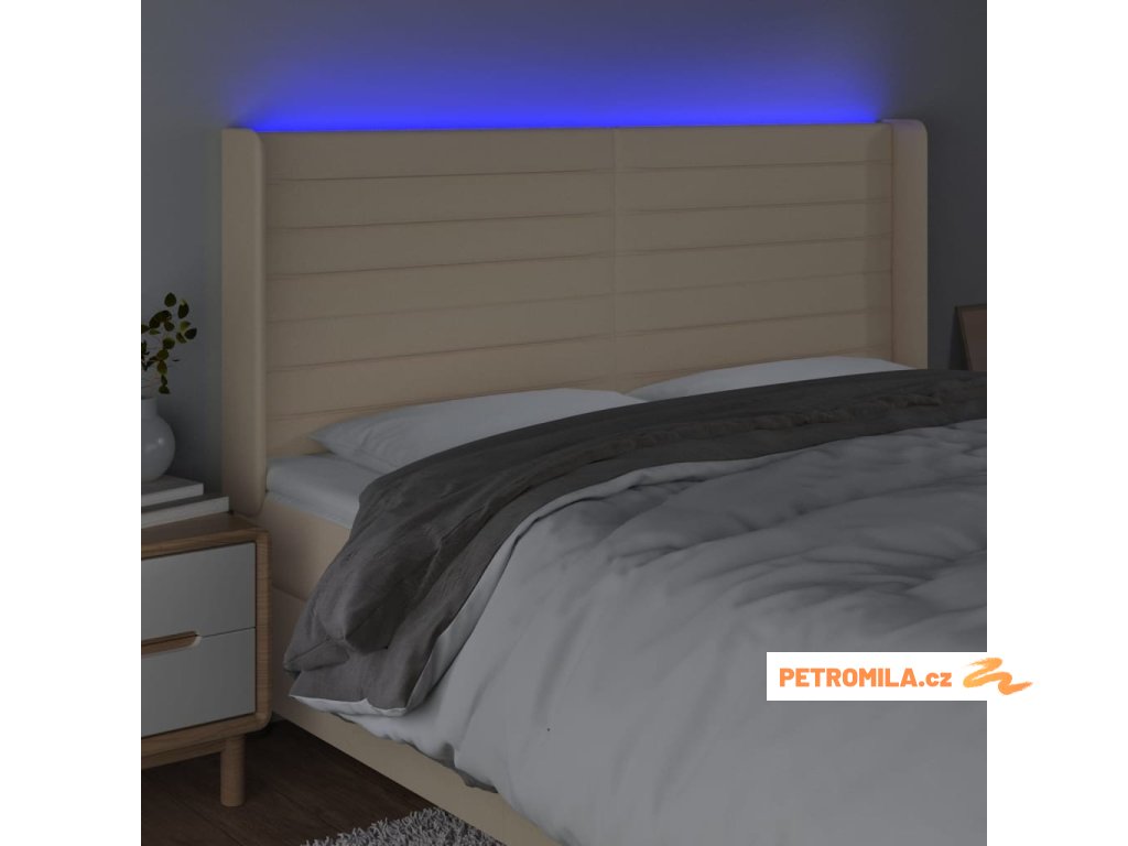 Čelo postele s LED krémové 183 x 16 x 118/128 cm textil