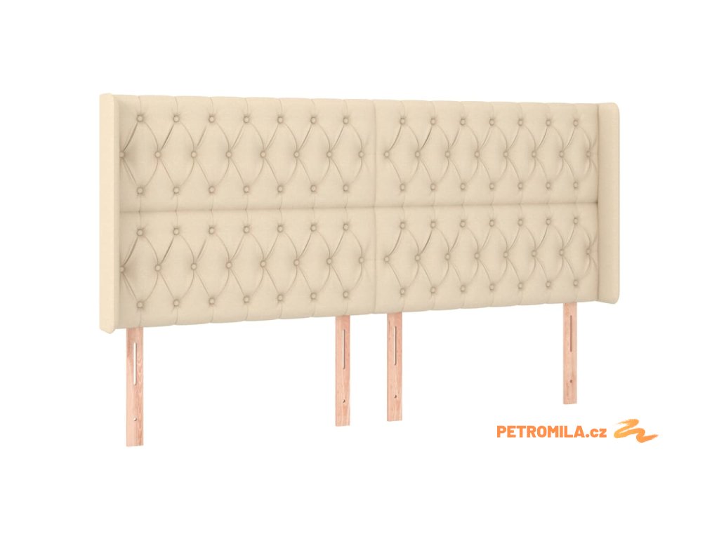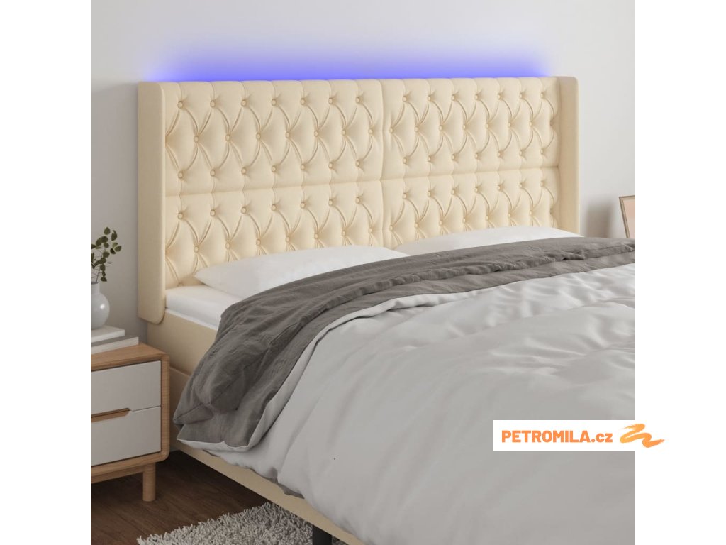 Čelo postele s LED krémové 183 x 16 x 118/128 cm textil