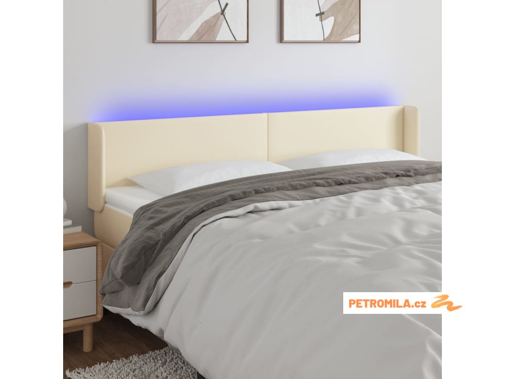 Čelo postele s LED krémové 183 x 16 x 78/88 cm umělá kůže