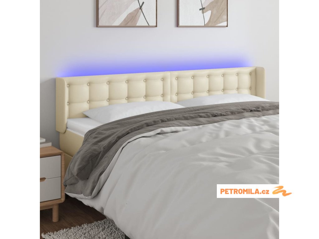Čelo postele s LED krémové 183 x 16 x 78/88 cm umělá kůže