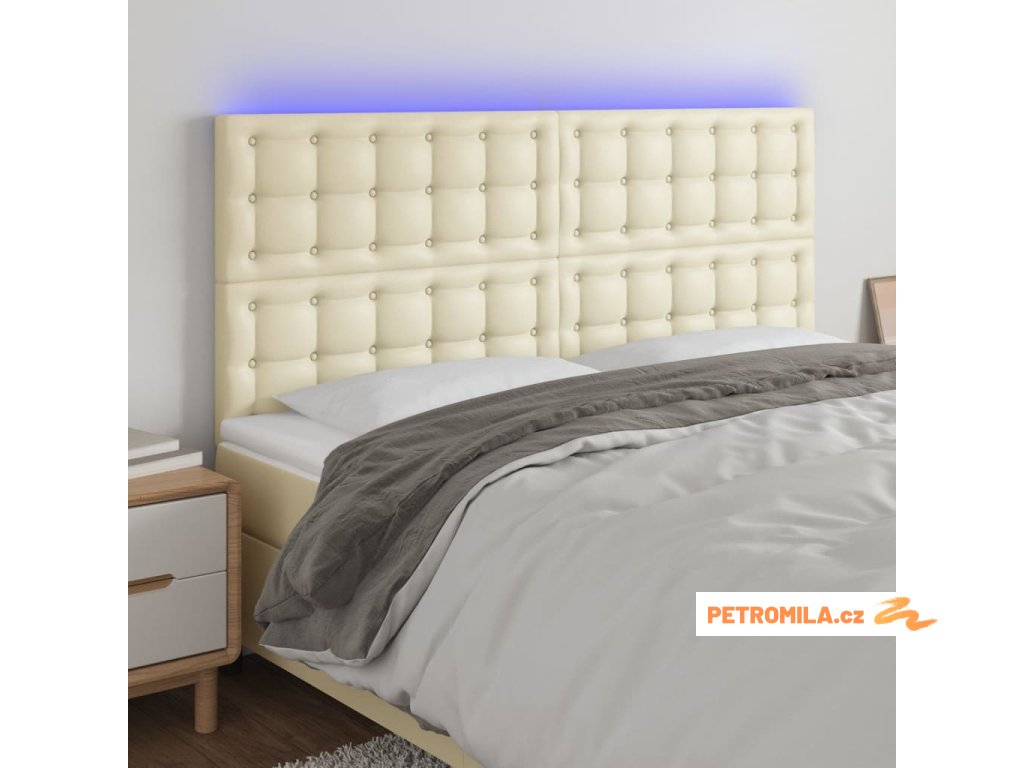 Čelo postele s LED krémové 200x5x118/128 cm umělá kůže