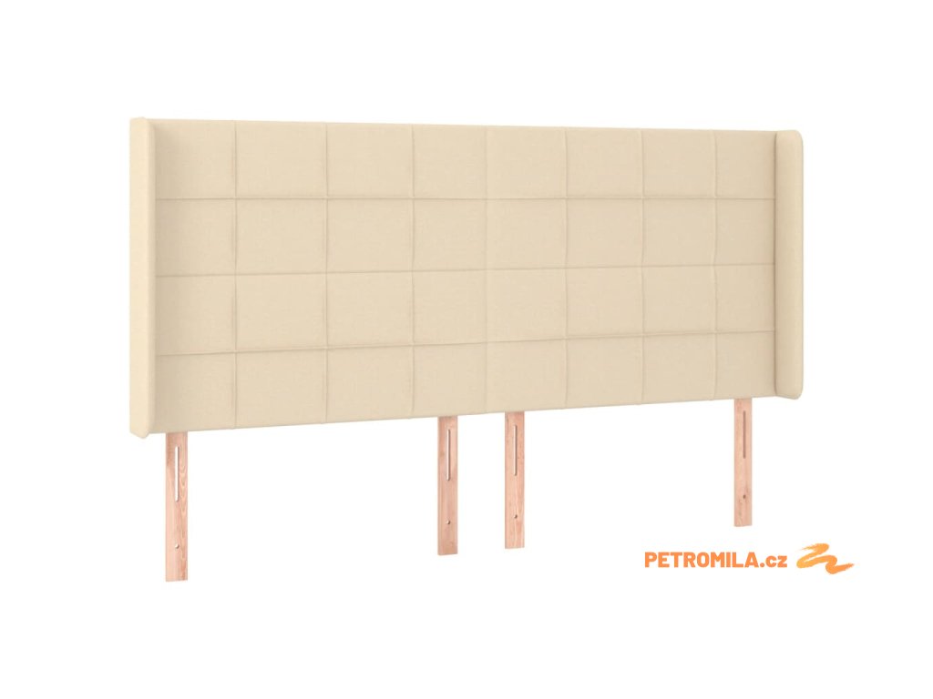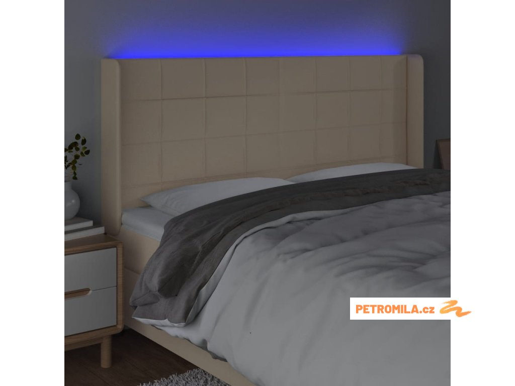Čelo postele s LED krémové 203 x 16 x 118/128 cm textil