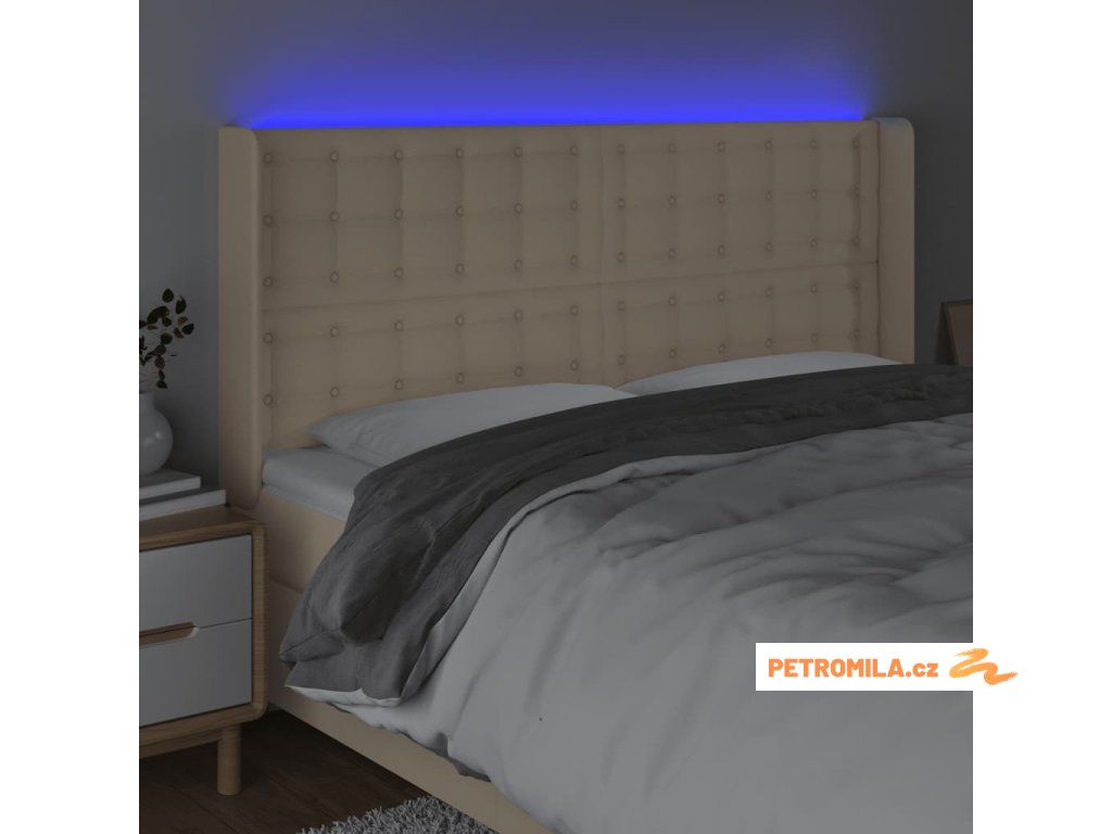 Čelo postele s LED krémové 203 x 16 x 118/128 cm textil