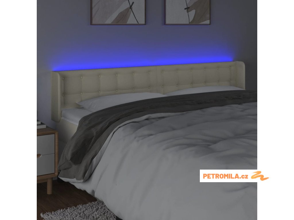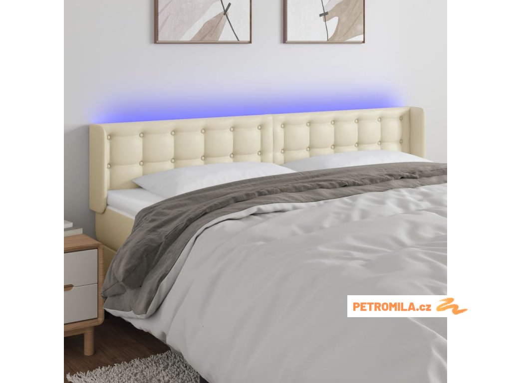 Čelo postele s LED krémové 203 x 16 x 78/88 cm umělá kůže