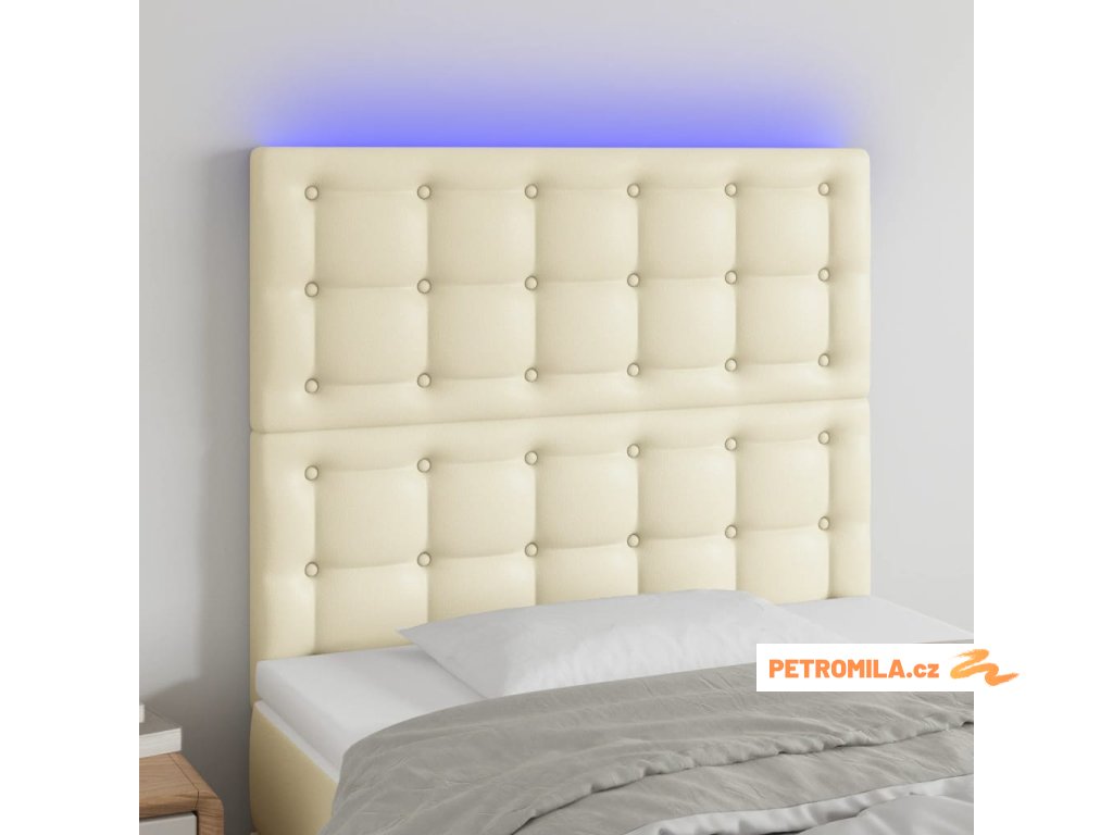 Čelo postele s LED krémové 90x5x118/128 cm umělá kůže