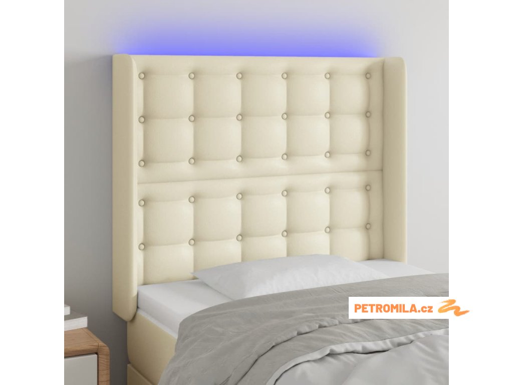 Čelo postele s LED krémové 93 x 16 x 118/128 cm umělá kůže