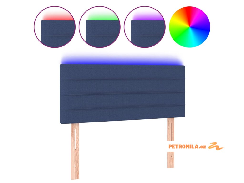 Čelo postele s LED modré 100x5x78/88 cm textil