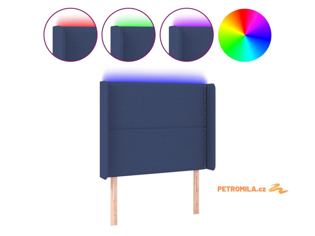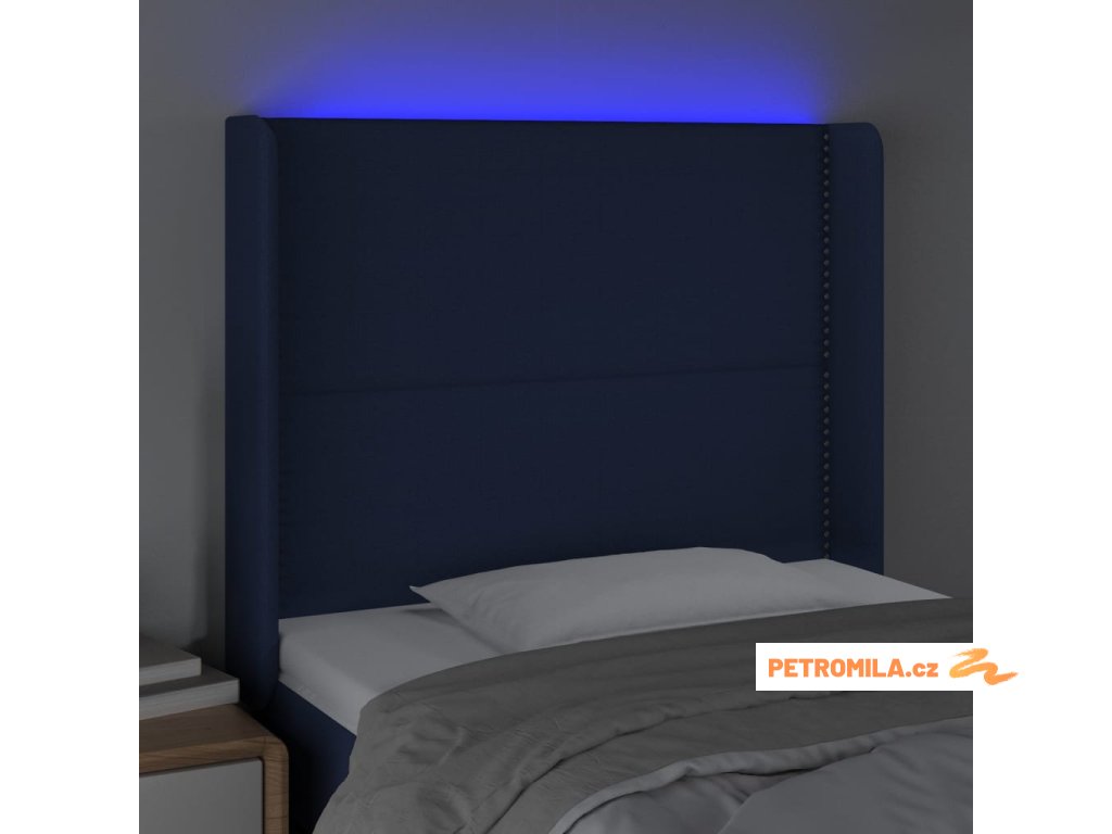 Čelo postele s LED modré 103 x 16 x 118/128 cm textil