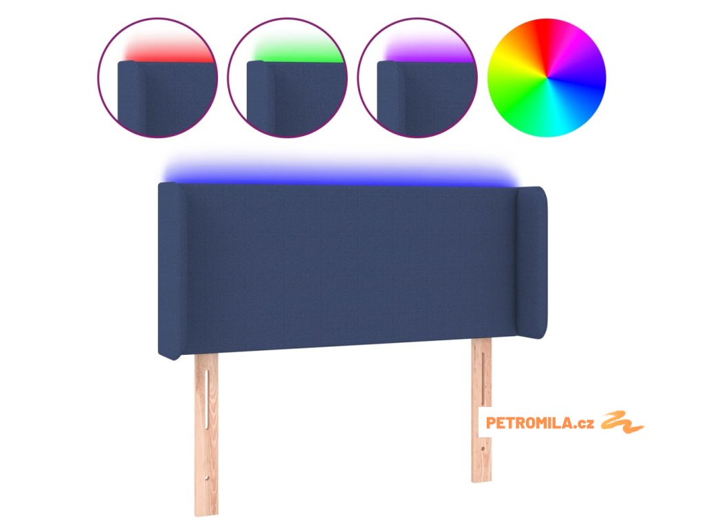 Čelo postele s LED modré 103 x 16 x 78/88 cm textil
