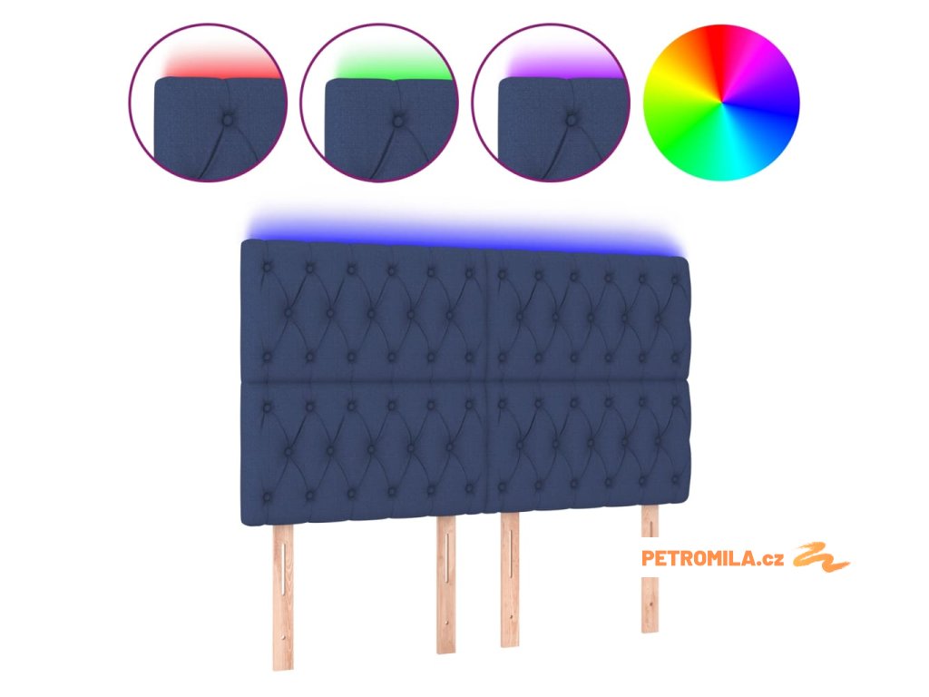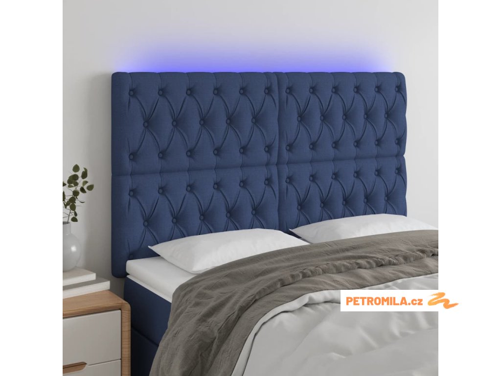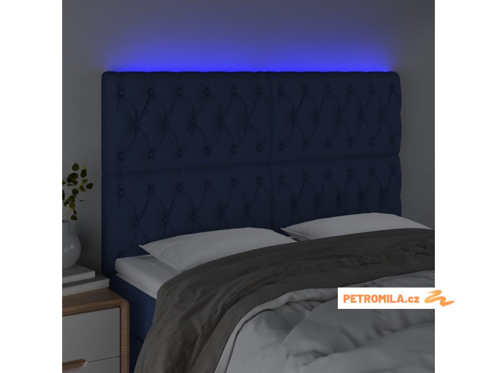 Čelo postele s LED modré 144x7x118/128 cm textil