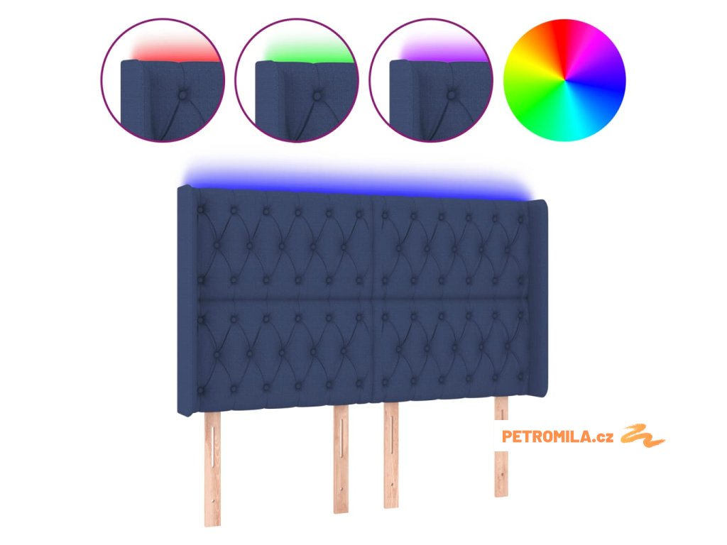 Čelo postele s LED modré 163 x 16 x 118/128 cm textil