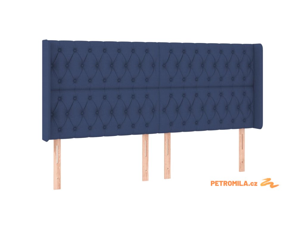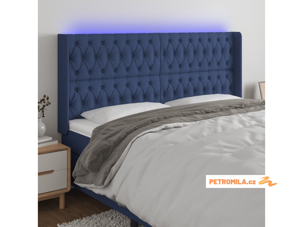 Čelo postele s LED modré 183x16x118/128 cm textil