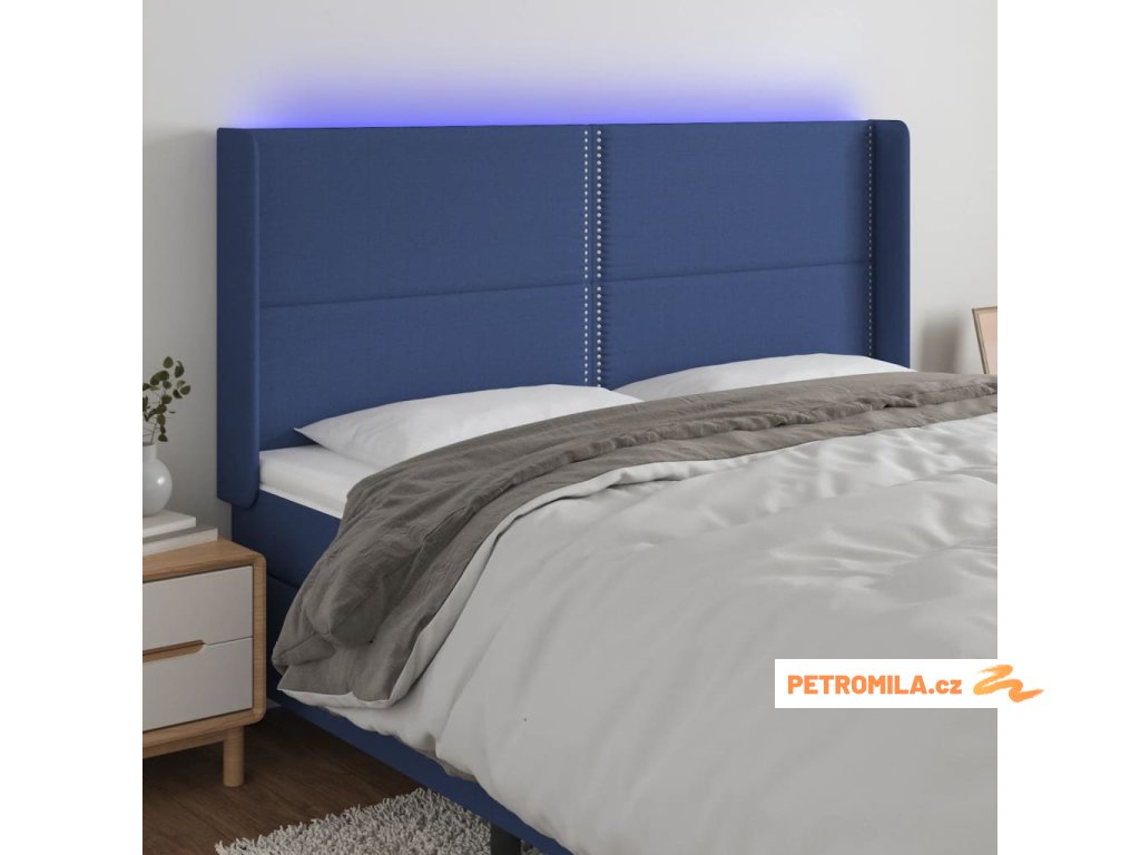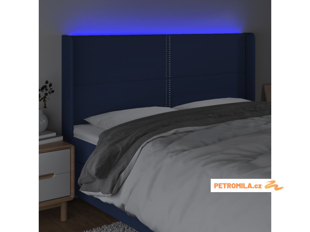 Čelo postele s LED modré 183x16x118/128 cm textil
