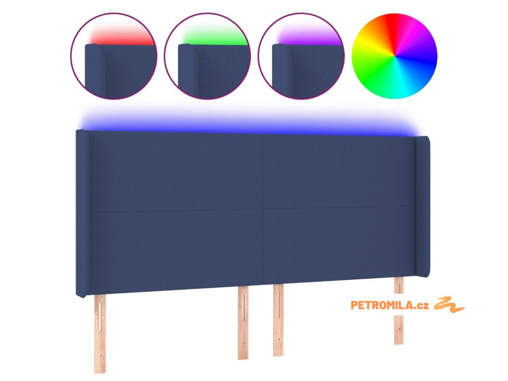 Čelo postele s LED modré 183x16x118/128 cm textil
