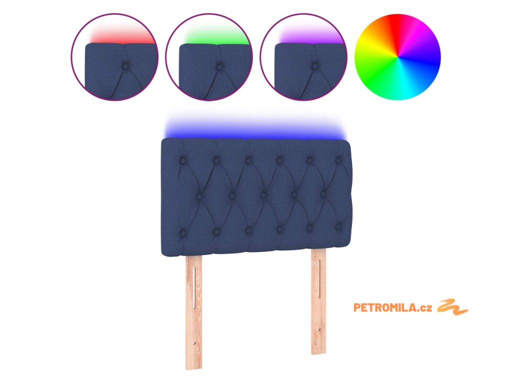 Čelo postele s LED modré 80 x 7 x 78/88 cm textil