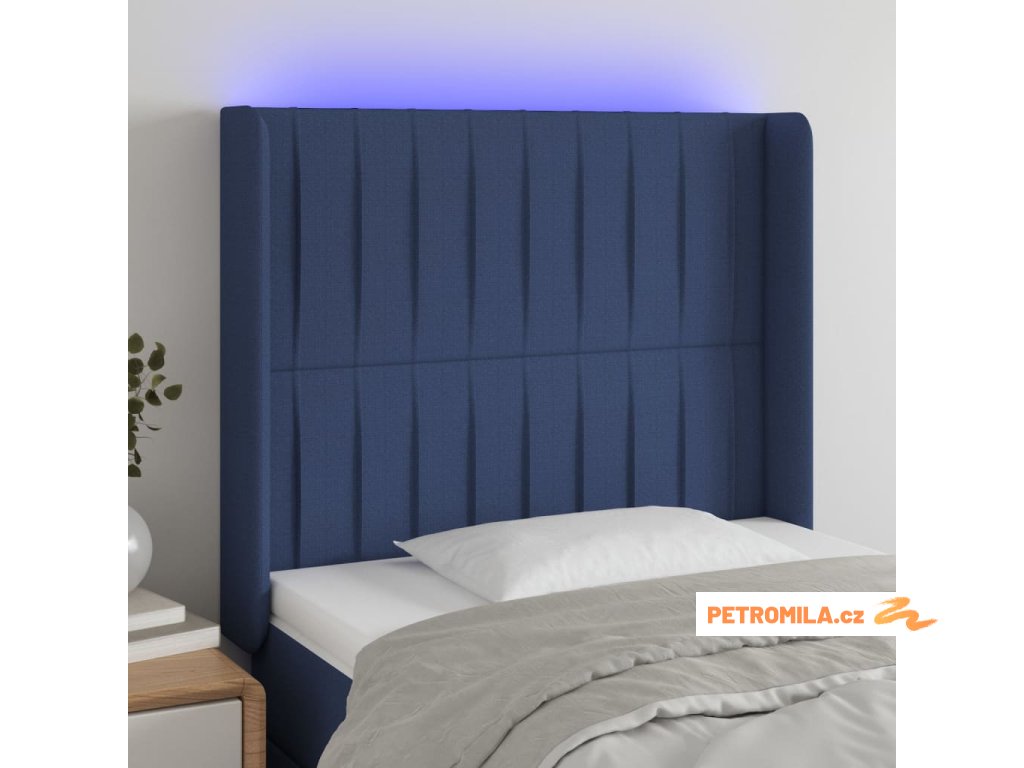 Čelo postele s LED modré 83 x 16 x 118/128 cm textil