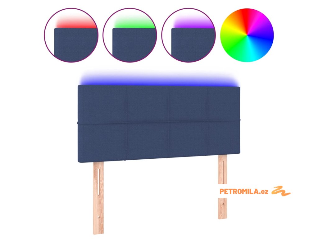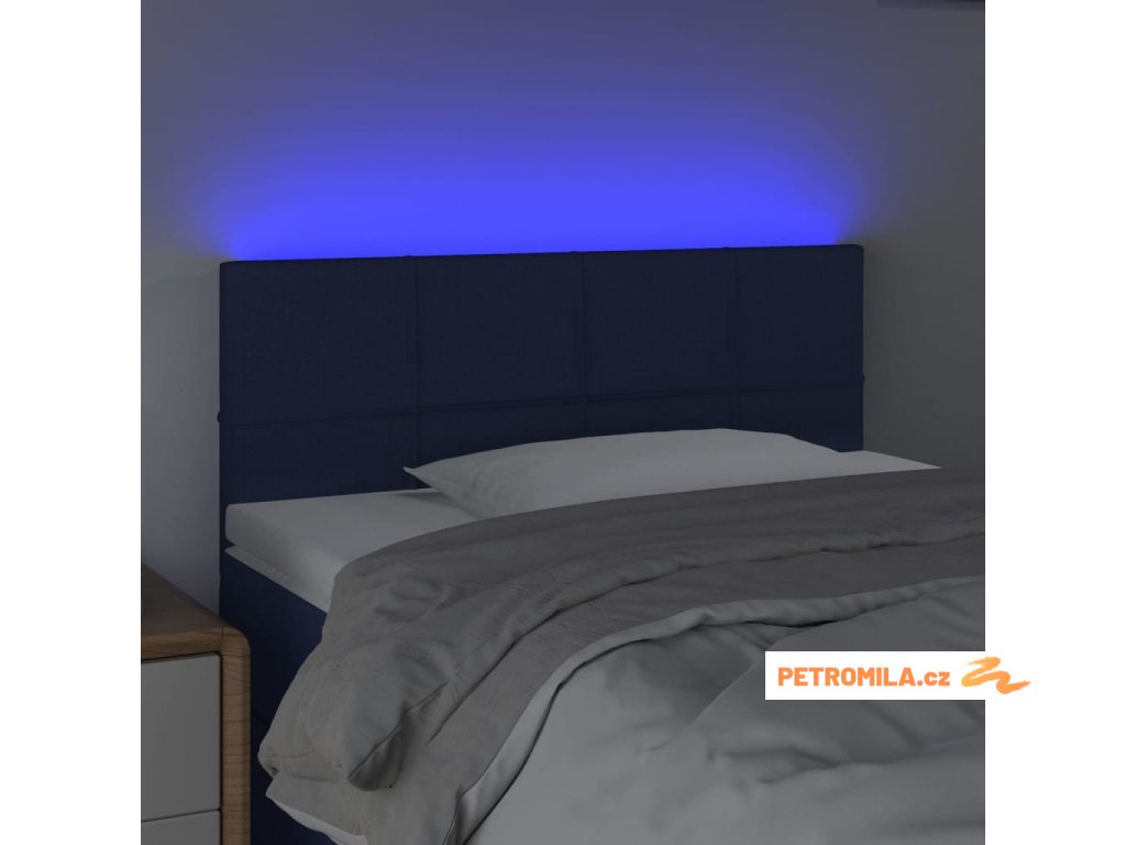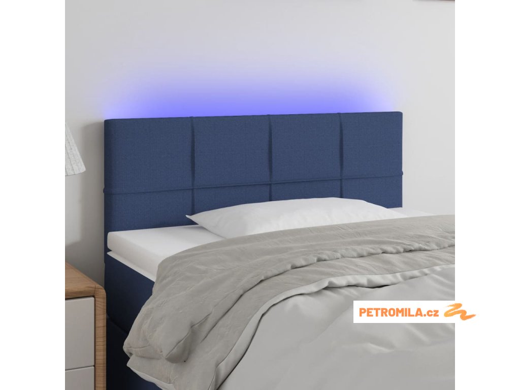 Čelo postele s LED modré 90x5x78/88 cm textil