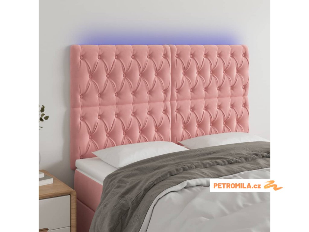 Čelo postele s LED růžové 144x7x118/128 cm samet