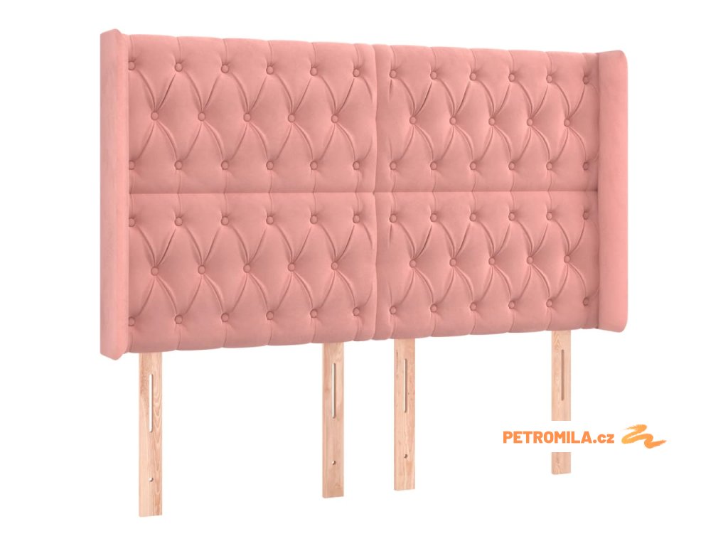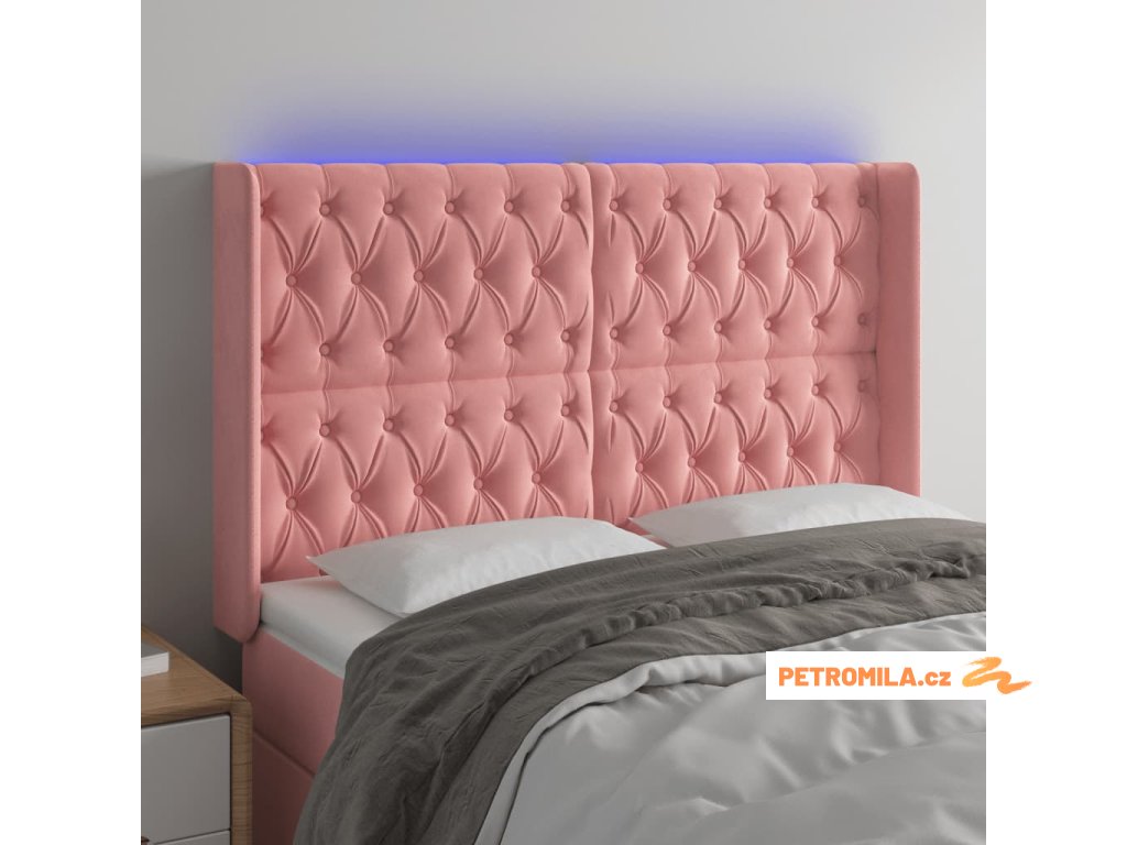 Čelo postele s LED růžové 147 x 16 x 118/128 cm samet