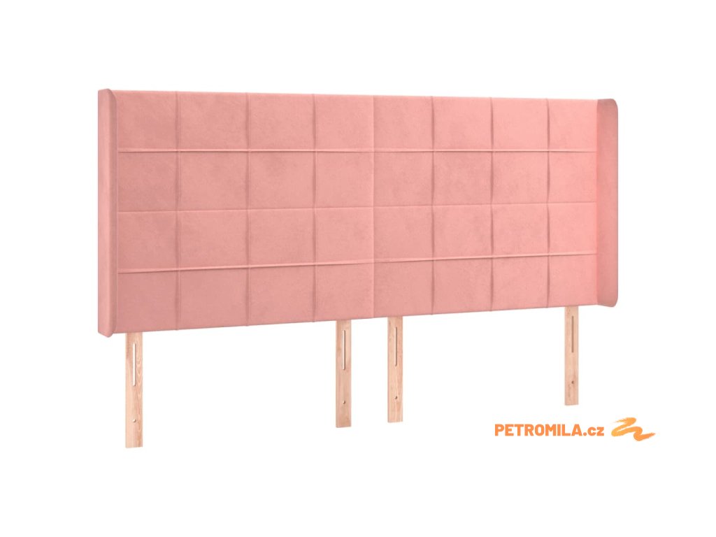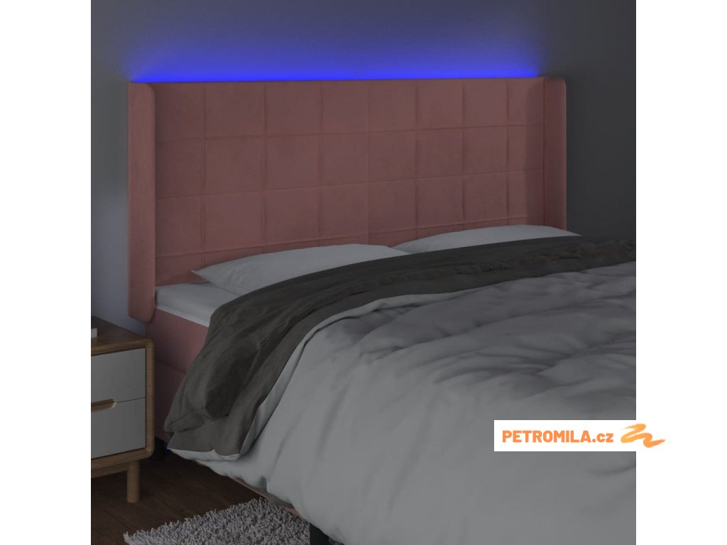 Čelo postele s LED růžové 163 x 16 x 118/128 cm samet