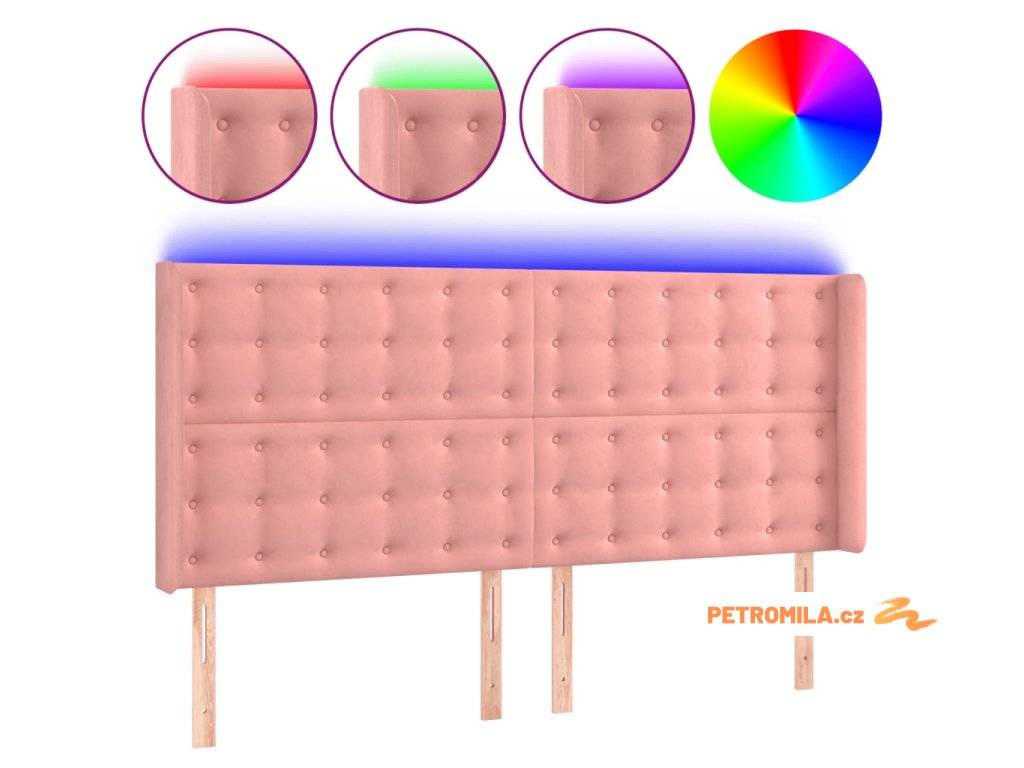 Čelo postele s LED růžové 163 x 16 x 118/128 cm samet