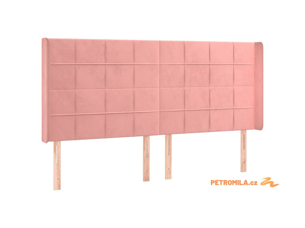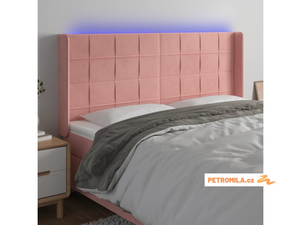 Čelo postele s LED růžové 183 x 16 x 118/128 cm samet
