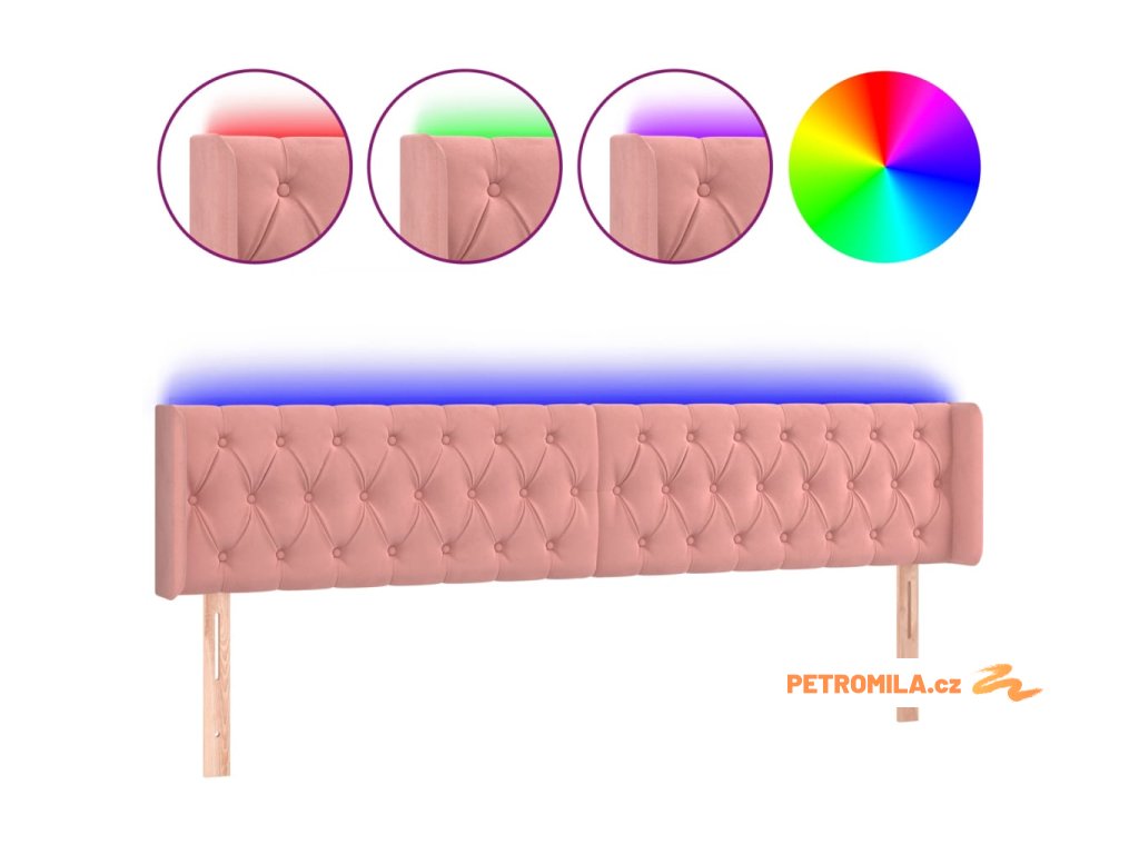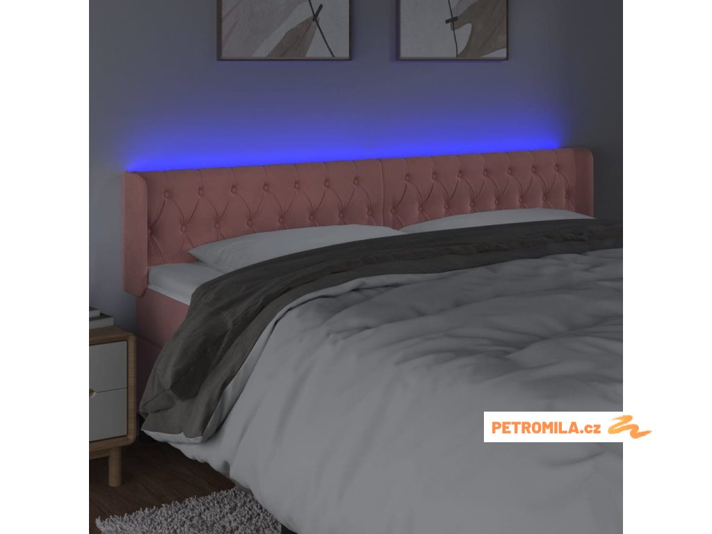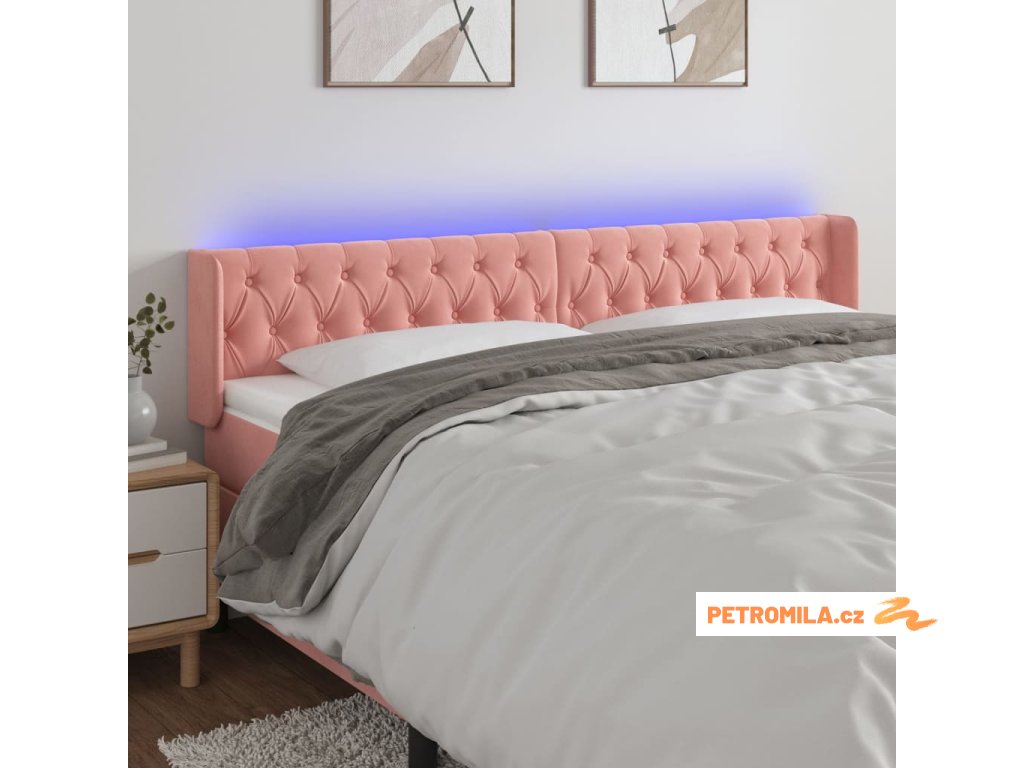 Čelo postele s LED růžové 183 x 16 x 78/88 cm samet