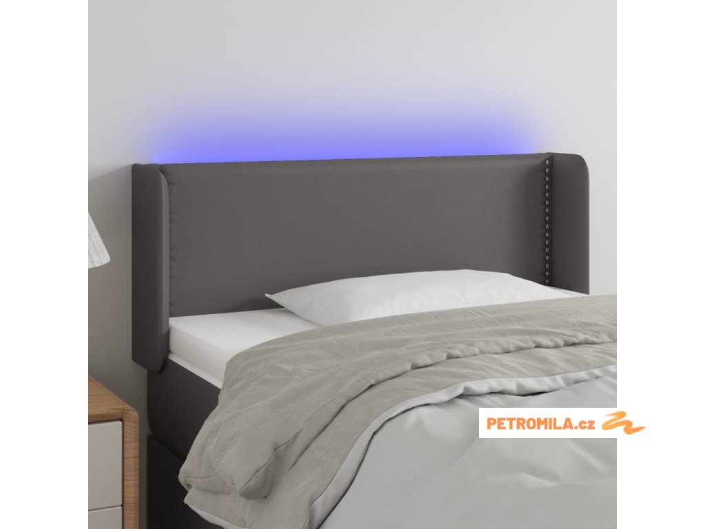 Čelo postele s LED šedé 103 x 16 x 78/88 cm umělá kůže