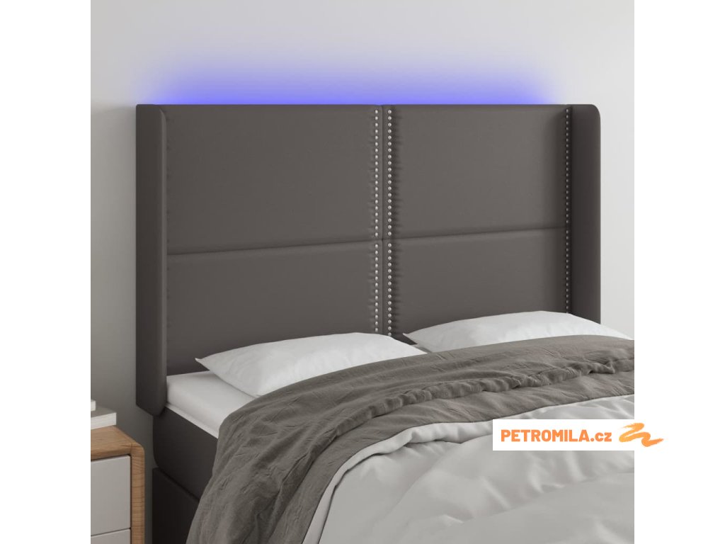 Čelo postele s LED šedé 147 x 16 x 118/128 cm umělá kůže