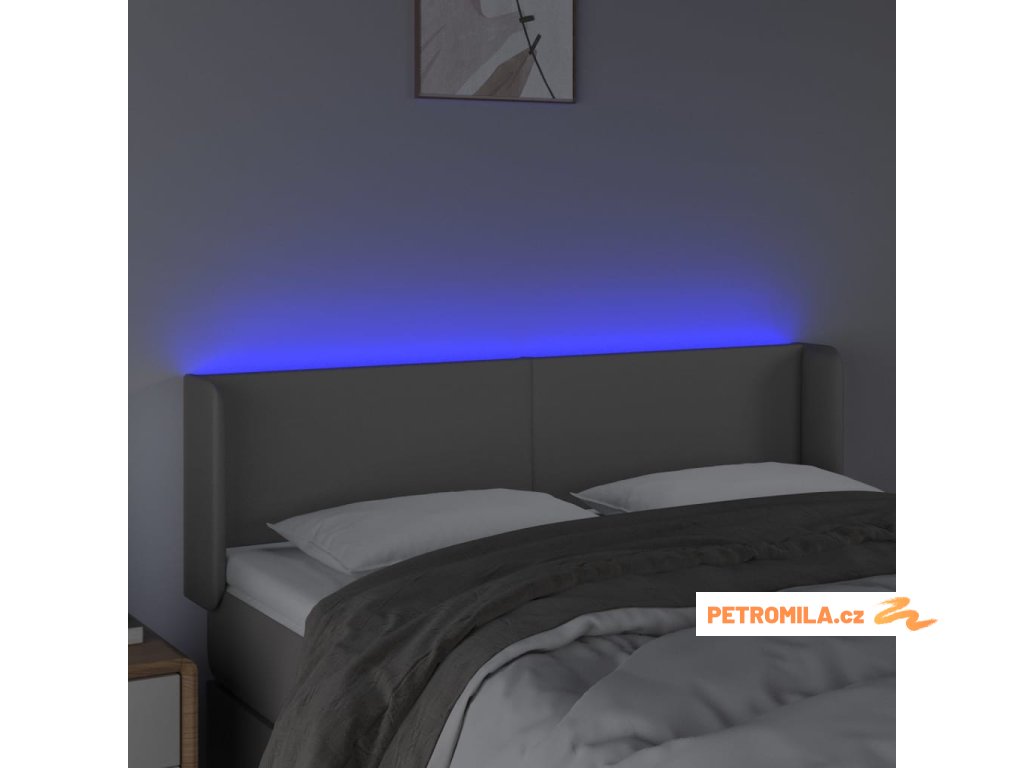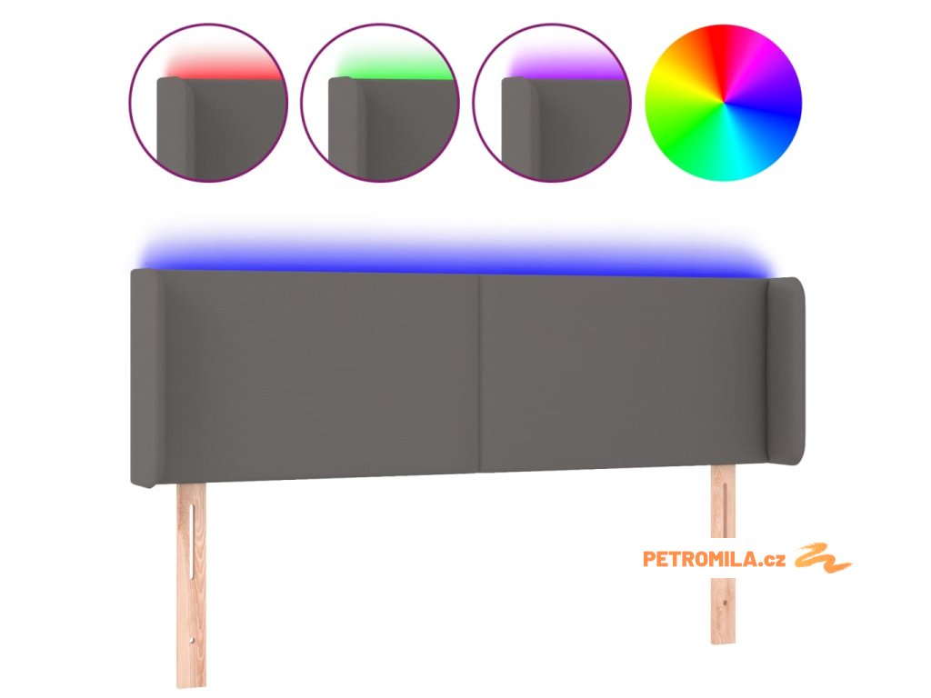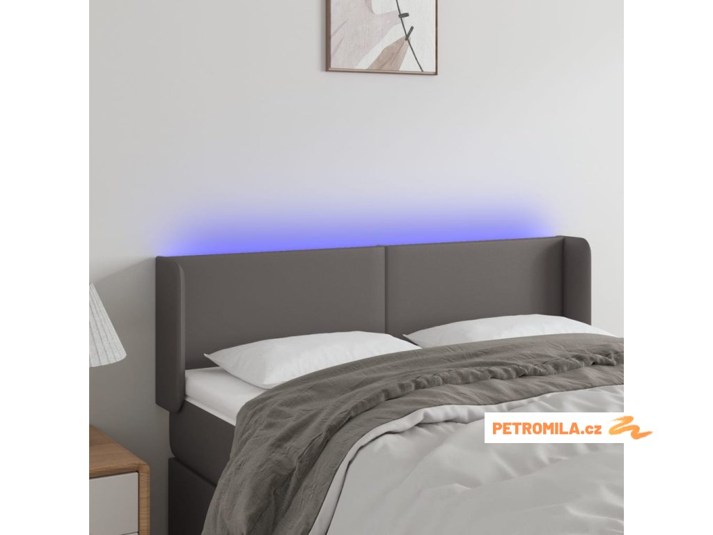 Čelo postele s LED šedé 147 x 16 x 78/88 cm umělá kůže