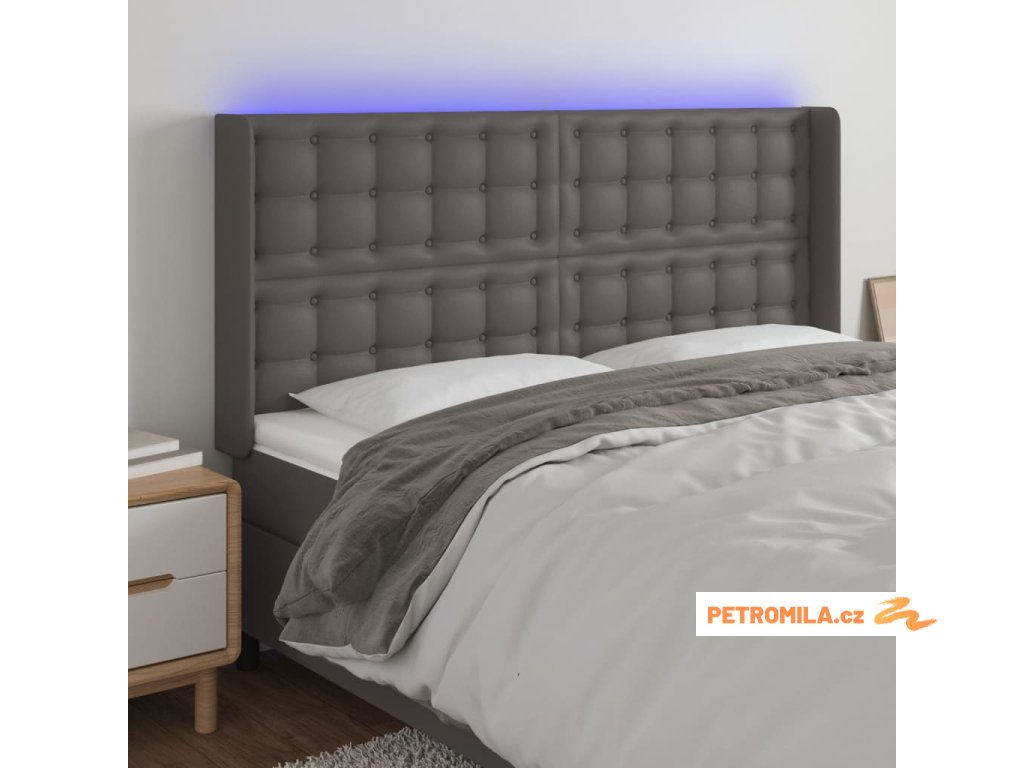 Čelo postele s LED šedé 183 x 16 x 118/128 cm umělá kůže