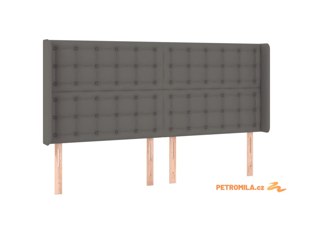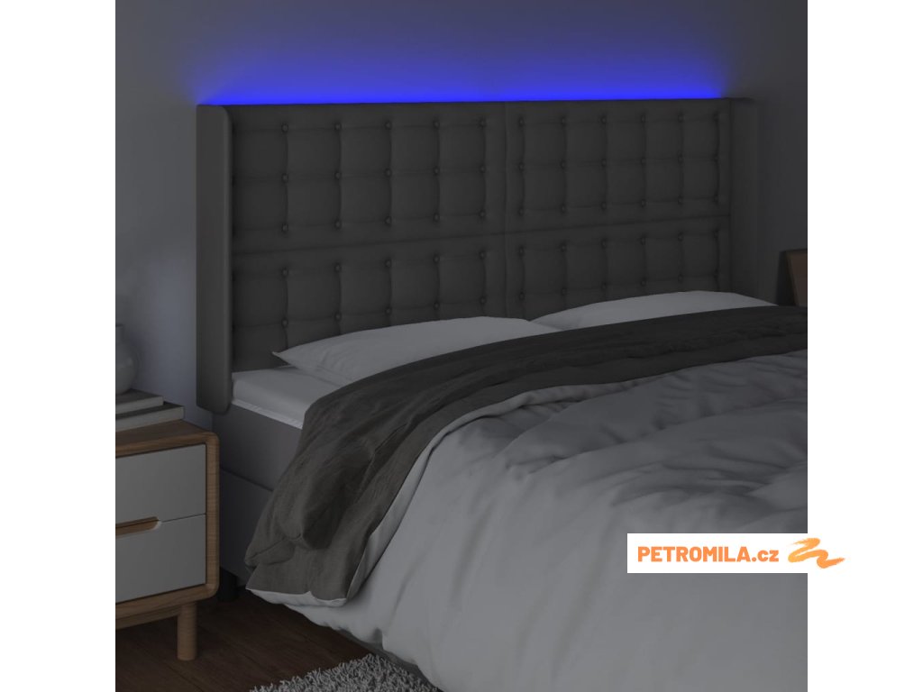 Čelo postele s LED šedé 203 x 16 x 118/128 cm umělá kůže