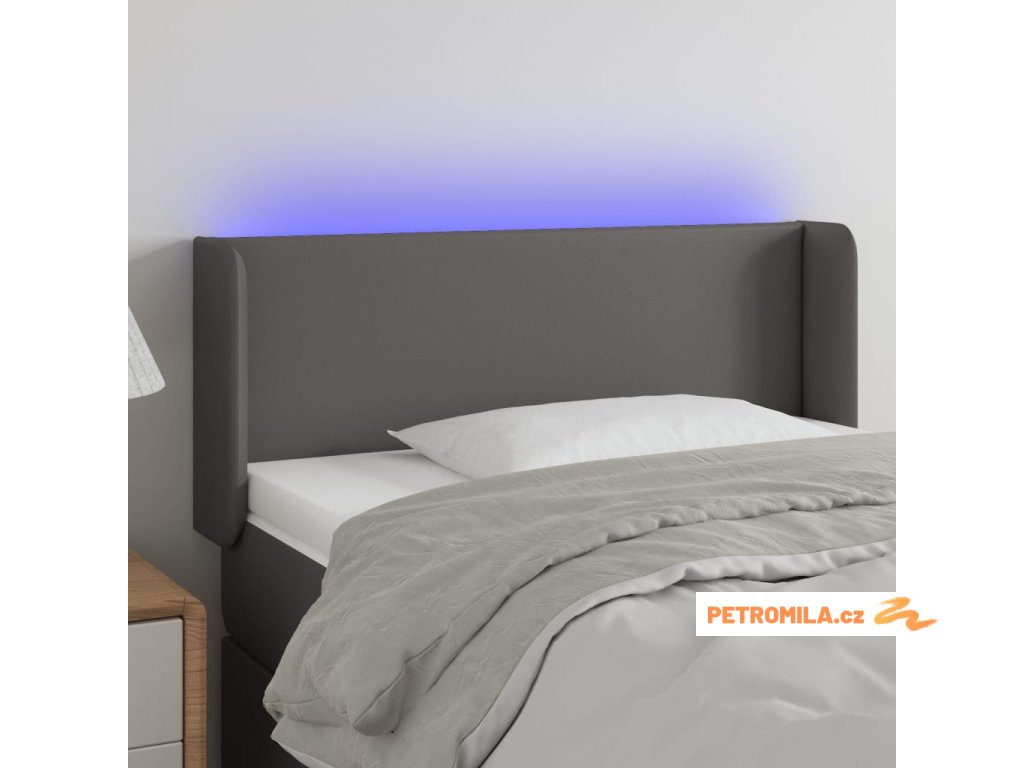 Čelo postele s LED šedé 93 x 16 x 78/88 cm umělá kůže