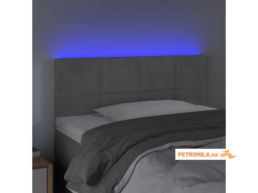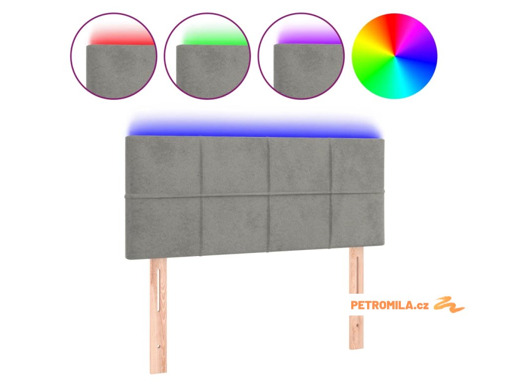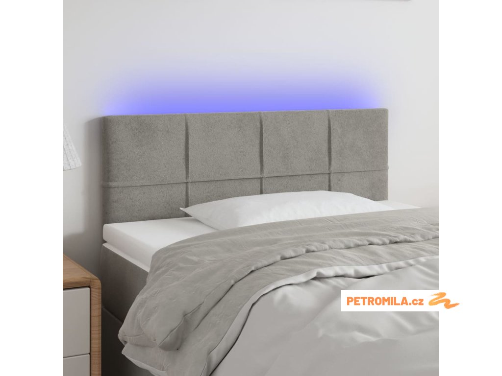 Čelo postele s LED světle šedé 100 x 5 x 78/88 cm samet