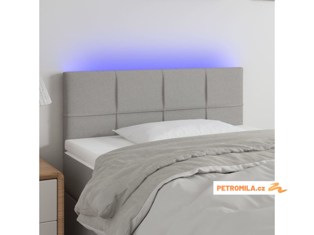 Čelo postele s LED světle šedé 100 x 5 x 78/88 cm textil