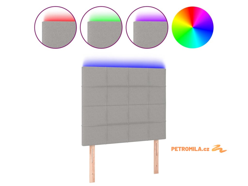 Čelo postele s LED světle šedé 100x5x118/128 cm textil
