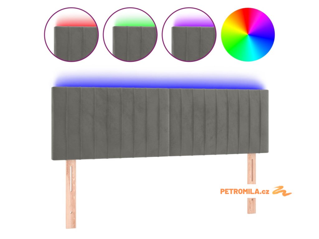 Čelo postele s LED světle šedé 144 x 5 x 78/88 cm samet
