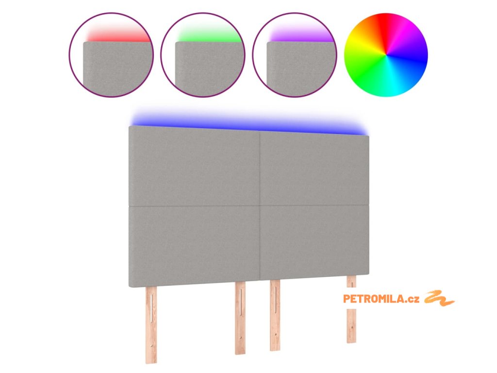 Čelo postele s LED světle šedé 144x5x118/128 cm textil
