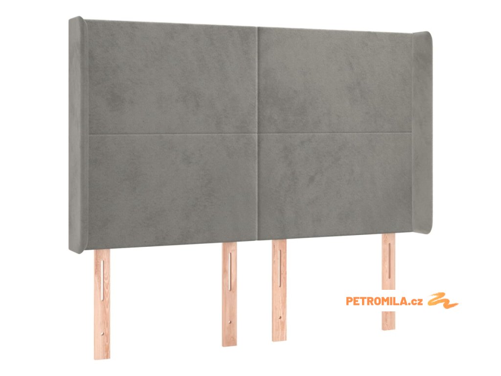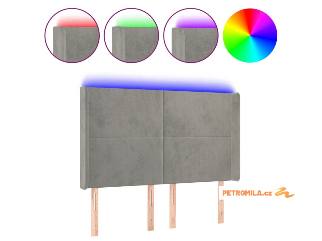 Čelo postele s LED světle šedé 147x16x118/128 cm samet