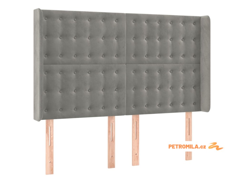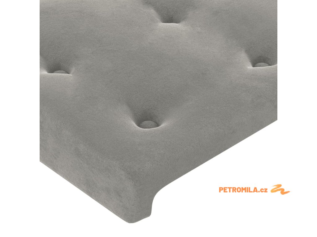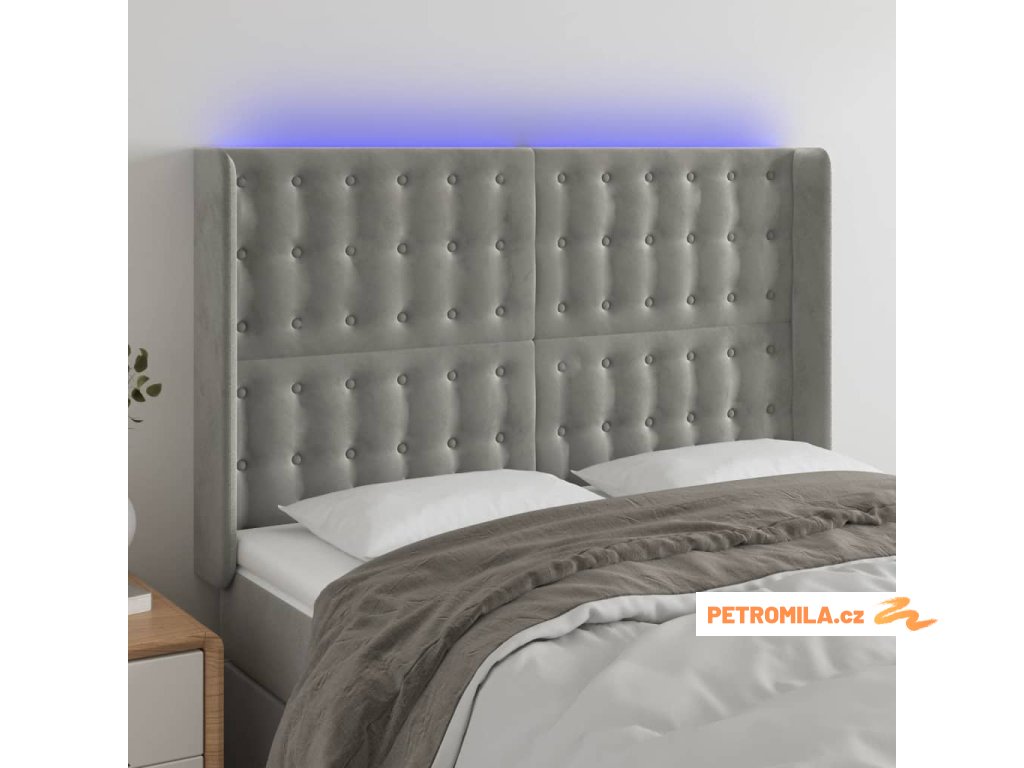 Čelo postele s LED světle šedé 147x16x118/128 cm samet