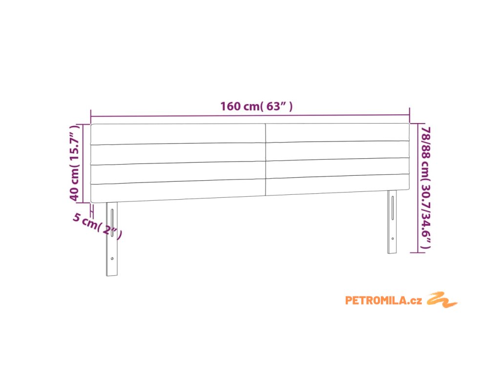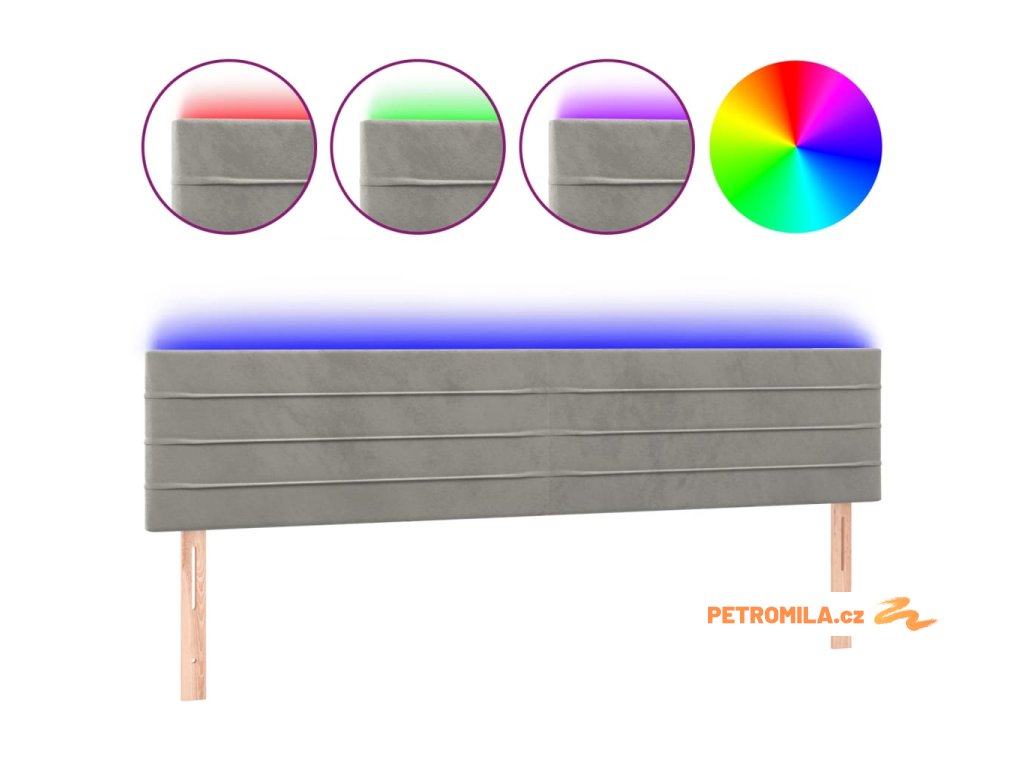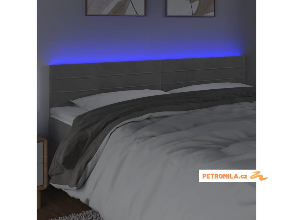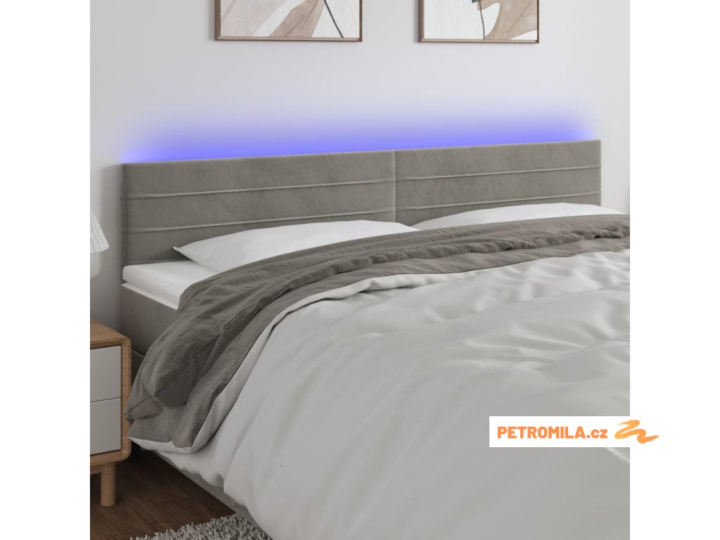 Čelo postele s LED světle šedé 160x5x78/88 cm samet