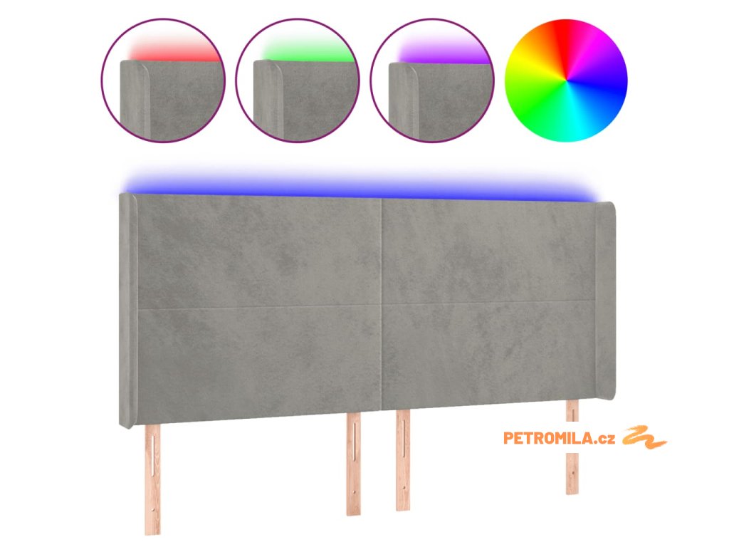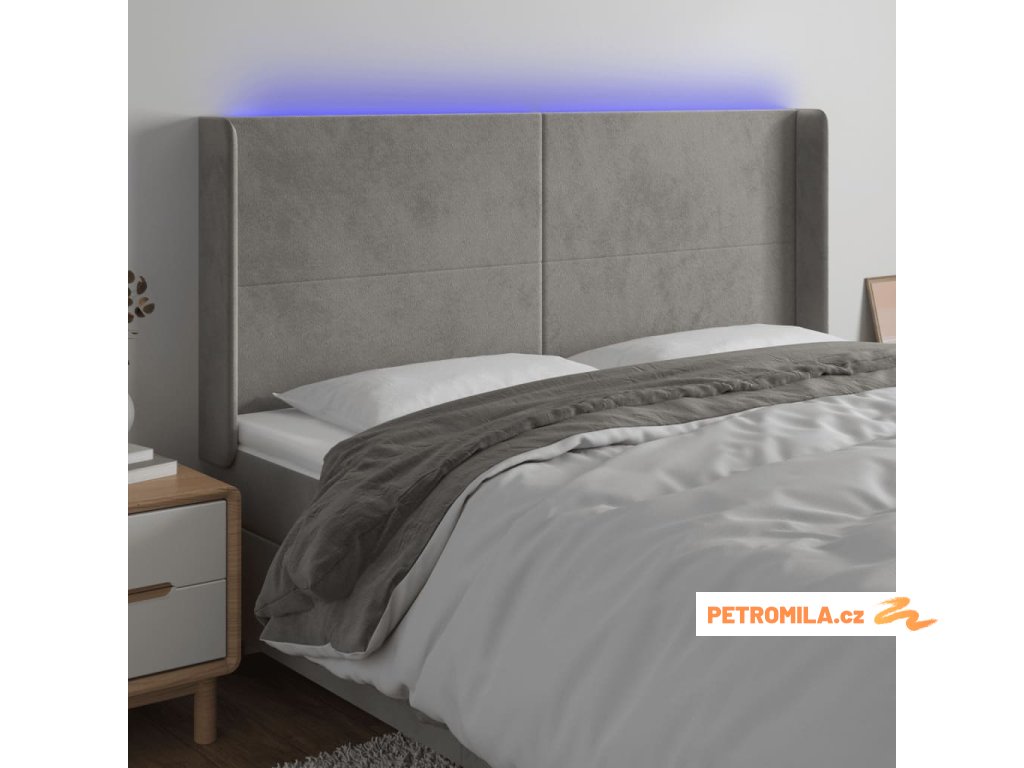 Čelo postele s LED světle šedé 163 x 16 x 118/128 cm samet