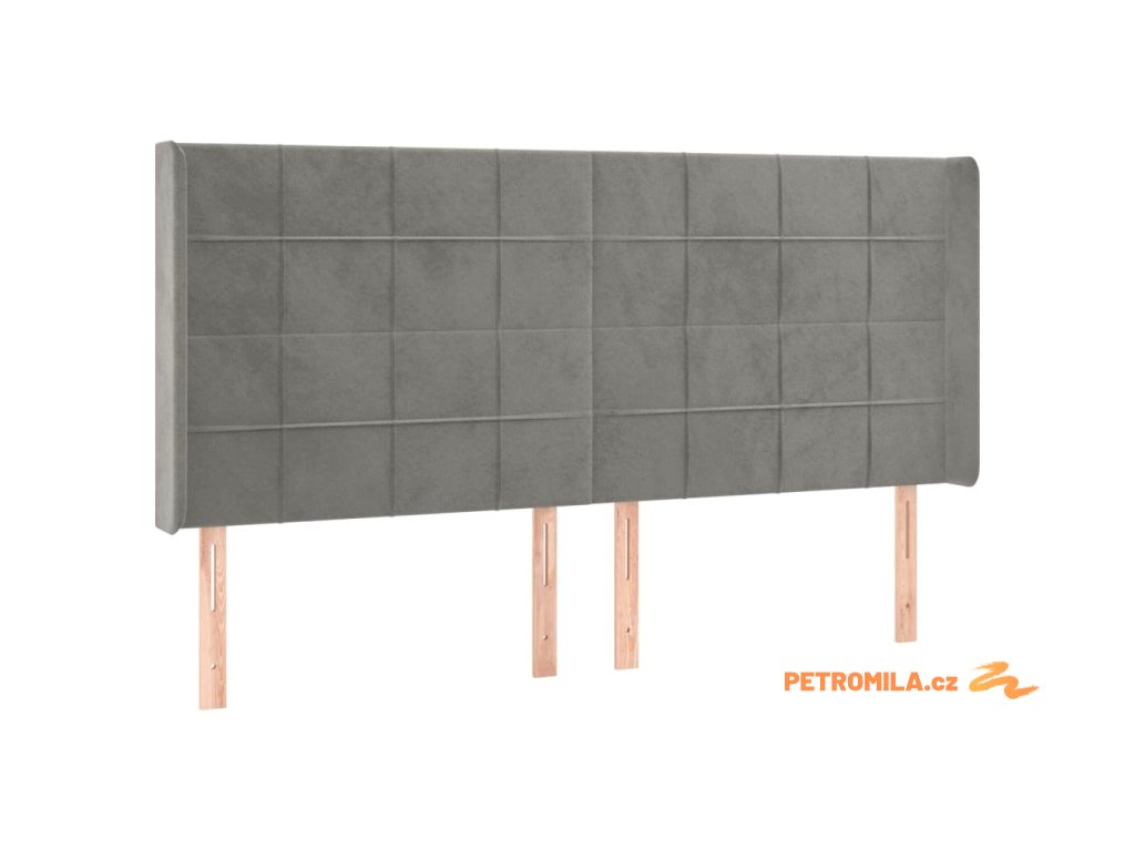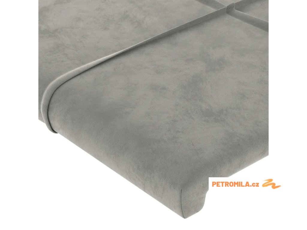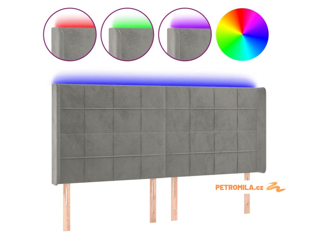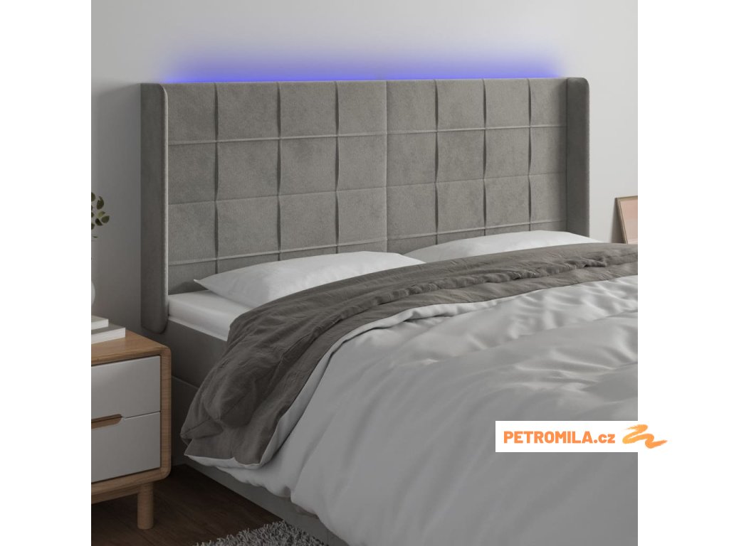 Čelo postele s LED světle šedé 163 x 16 x 118/128 cm samet