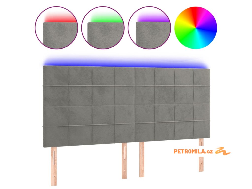 Čelo postele s LED světle šedé 180x5x118/128 cm samet
