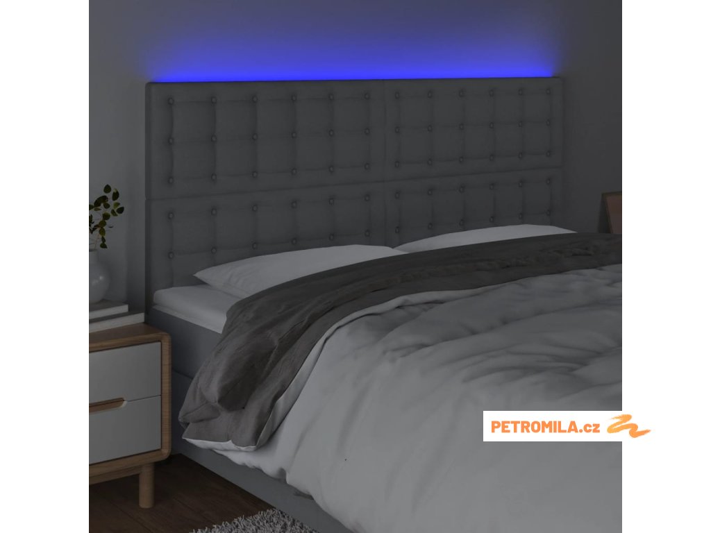 Čelo postele s LED světle šedé 180x5x118/128 cm textil