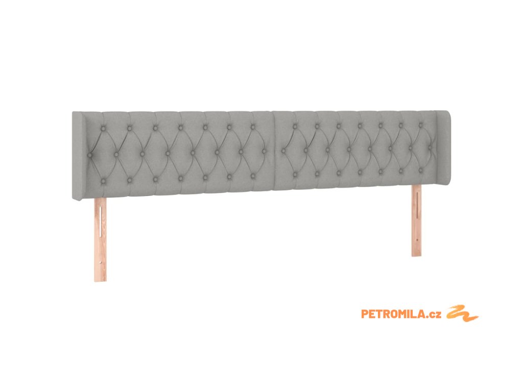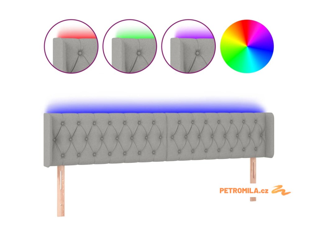 Čelo postele s LED světle šedé 183 x 16 x 78/88 cm textil