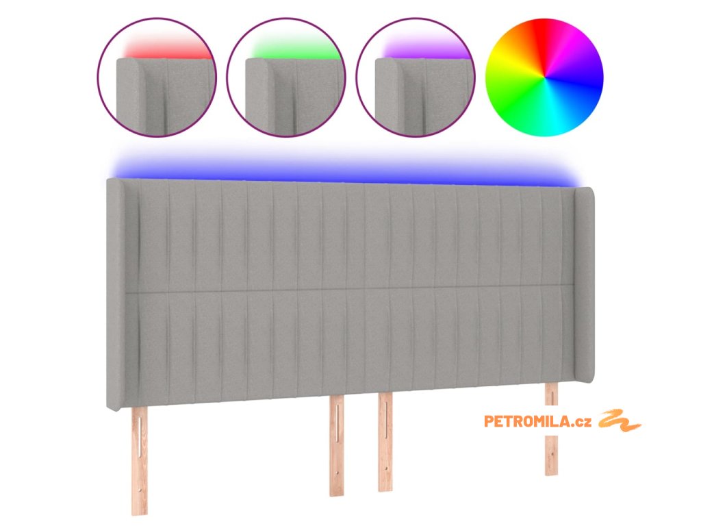 Čelo postele s LED světle šedé 183x16x118/128 cm textil