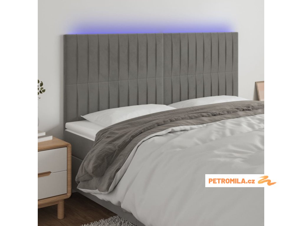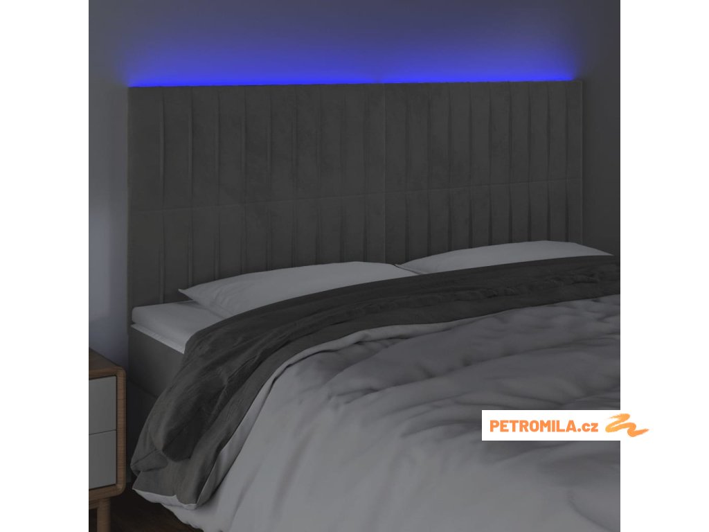 Čelo postele s LED světle šedé 200x5x118/128 cm samet