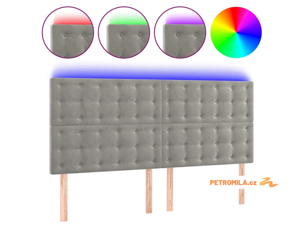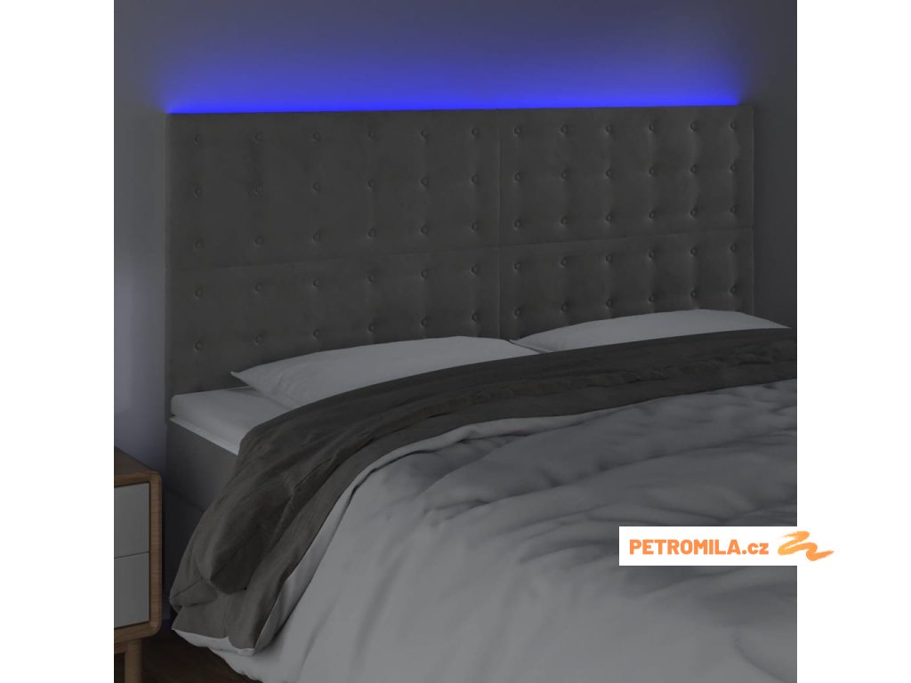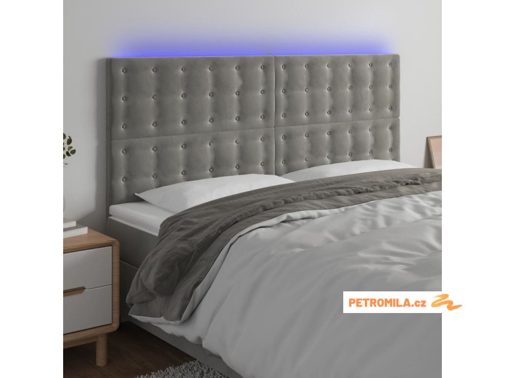 Čelo postele s LED světle šedé 200x5x118/128 cm samet