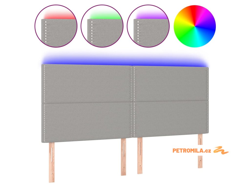 Čelo postele s LED světle šedé 200x5x118/128 cm textil